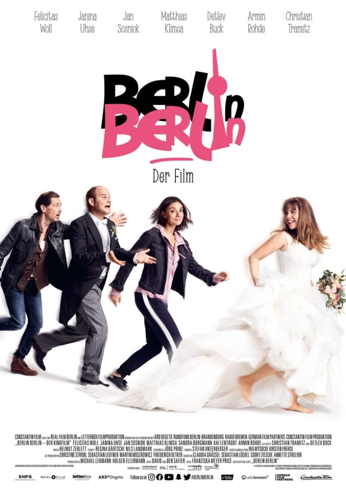 Mit BERLIN, BERLIN – Der Film , eine Produktion der REAL FILM Berlin, präsentiert Constantin Film die Komödie des Frühjahrs, erfrischend anders und herrlich absurd. Hochkarätig besetzt mit Felicitas Woll („Die Ungehorsame“), Janina Uhse (DER VORNAME, „Betonrausch“), Jan Sosniok („Danny Lowinski“), Matthias Klimsa („Die Pfefferkörner“) und Sandra Borgmann („Dark“). An ihrer Seite glänzen prominente Gäste wie Armin Rohde, Detlev Buck, Christian Tramitz, Kailas Mahadevan, Gitta Schweighöfer u.v.a.