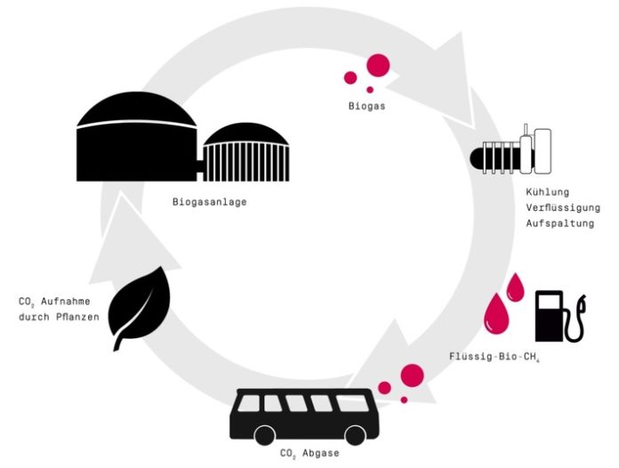 Biomethan als Kraftstoff minimiert die Emissionen von Feinstaub und Stickoxiden und ermöglicht zudem auch einen CO2-neutralen Fahrzeugbetrieb: Das CO2, das beim Busbetrieb anfällt, wird von den Pflanzen schließlich wiederverwendet, um Fotosynthese zu betreiben. So schließt sich der Kreis, der vorhandene Ressourcen wirtschaftlich einsetzt und es möglich macht, sie immer wieder erneut einzusetzen.